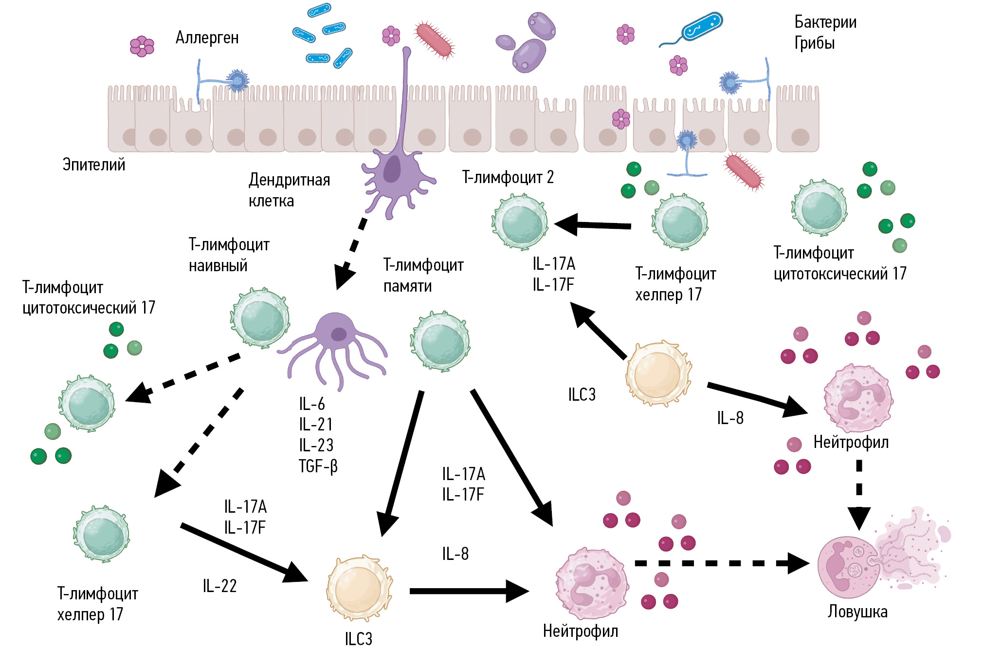Тх17, ILC3, Тс17, нейтрофилы