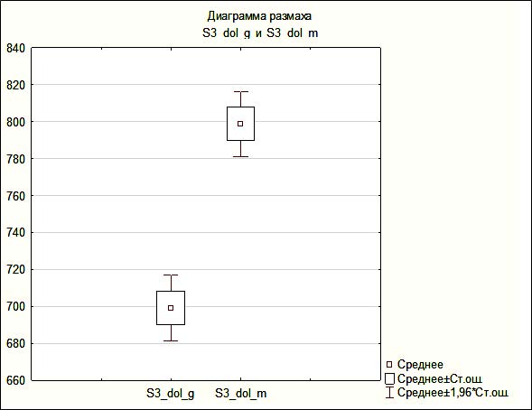Рис. 4. Размеры сектора S3 ушной раковины, гендерное сравнение