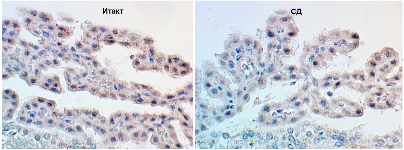 Проведенное нами ранее микроскопическое исследование структур головного мозга экспериментальных животных на данной модели стрепозотоцин-индуцированного сахарного диабета продемонстрировало наличие умеренных нейродегенеративных изменений в полях гиппокмпа (СА1, СА3).