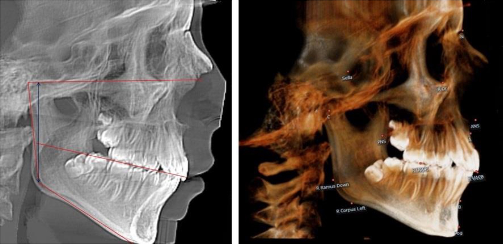 Рис. 5. ТРГ и ОПТГ пациента после смены молочных зубов и прорезывания вторых постоянных моляров