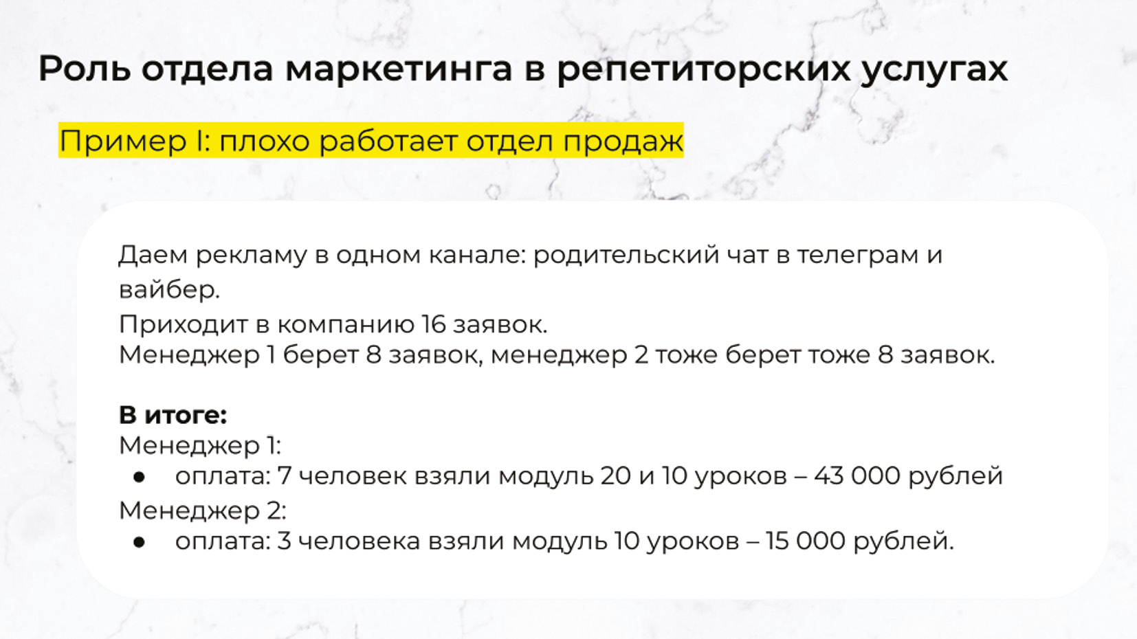 Рис. 1. Анализ работы отдела менеджеров по продажам