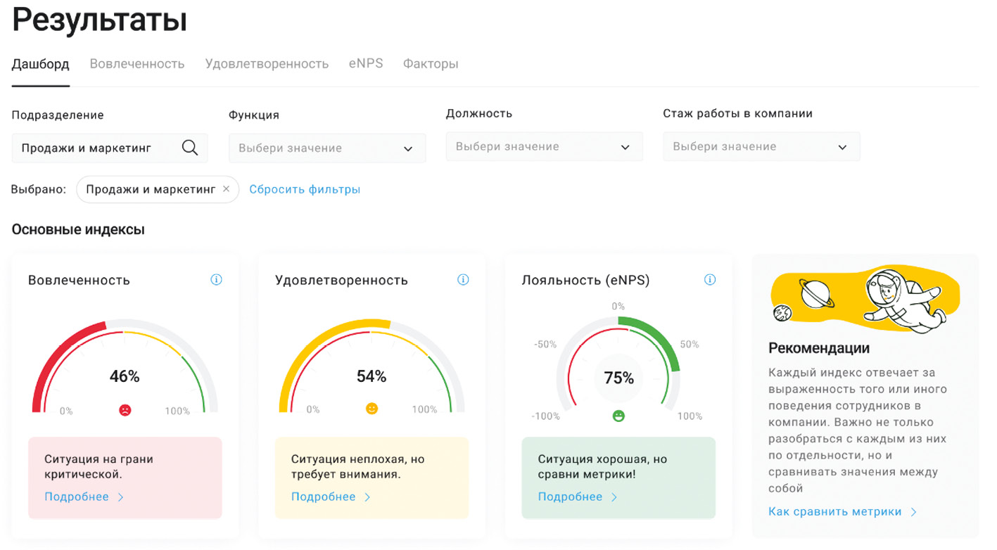 Результаты помогут психологу отслеживать производительность сотрудников и выявлять причины роста/падения, назначать обучение, ставить задачи по работе с вовлеченностью.